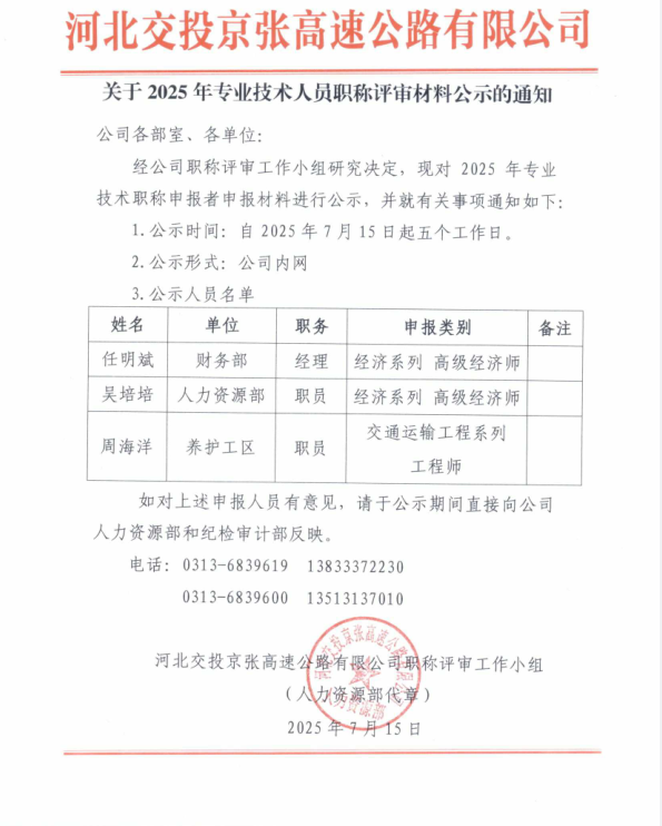 關(guān)于2025年專業(yè)技術(shù)人員職稱評(píng)審材料公示的通知
